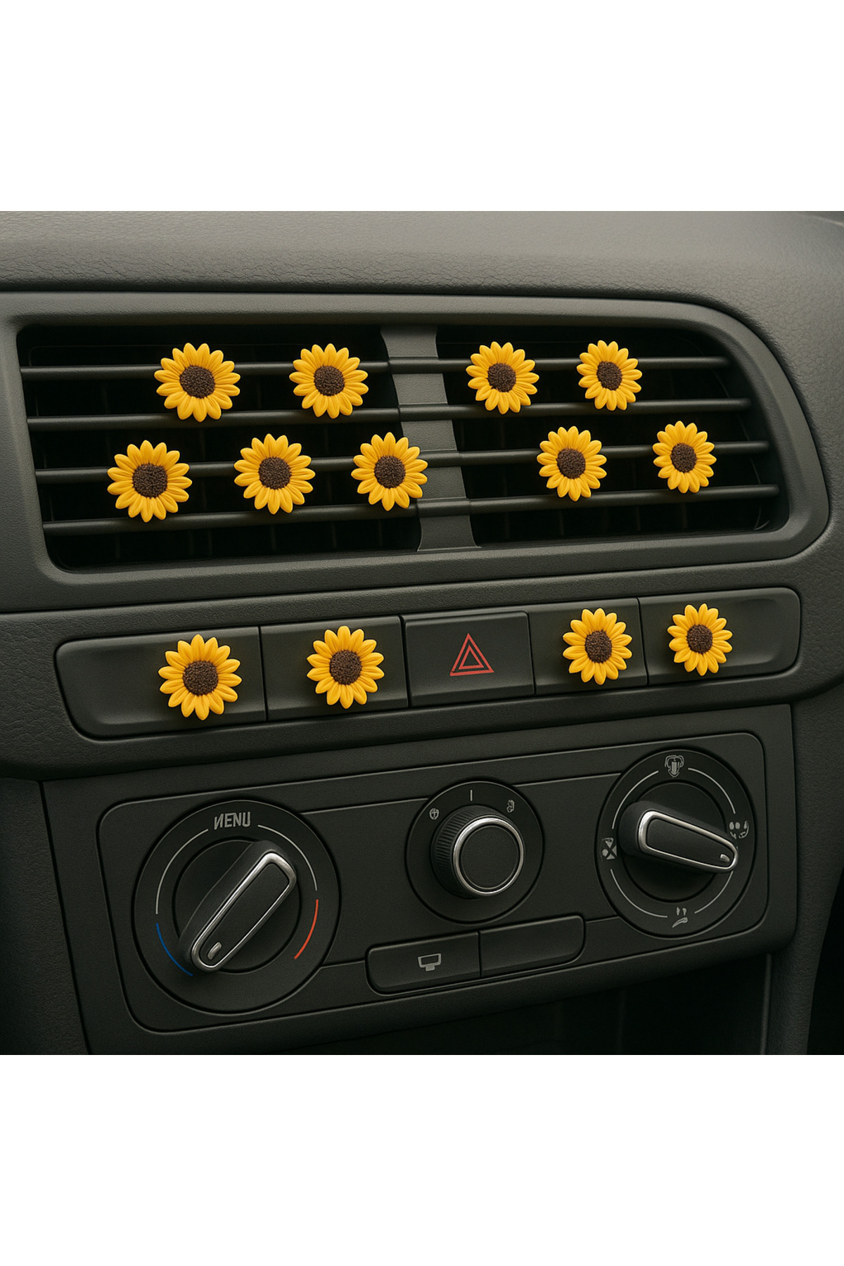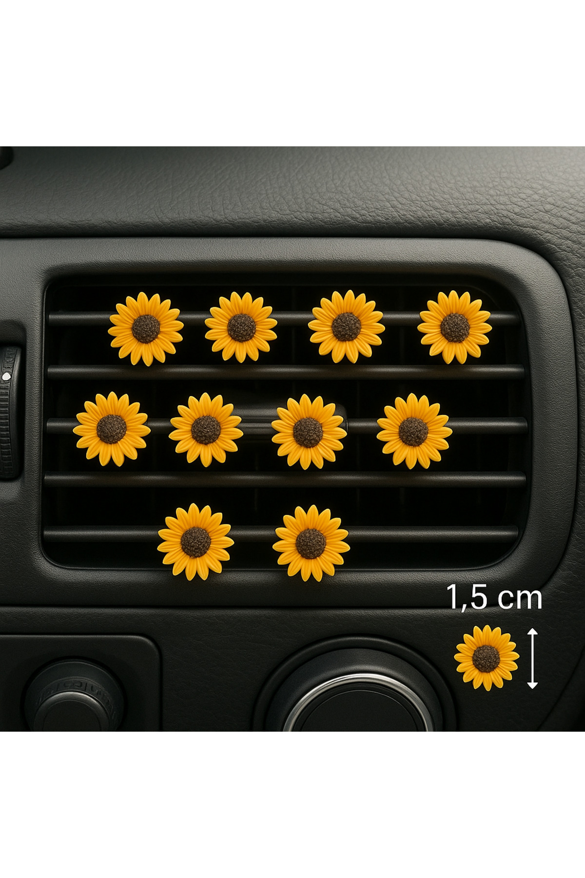 Küçük detaylar büyük fark yaratır! 1 cm çapındaki bu mini ayçiçeği seti, 3’lü olarak gönderilir ve özellikle araç içi süslemelerde fark yaratır. Havalandırma ızgaralarına uyumlu yapısıyla kolayca takılır. Sevimli ve enerjik bir atmosfer için ideal!