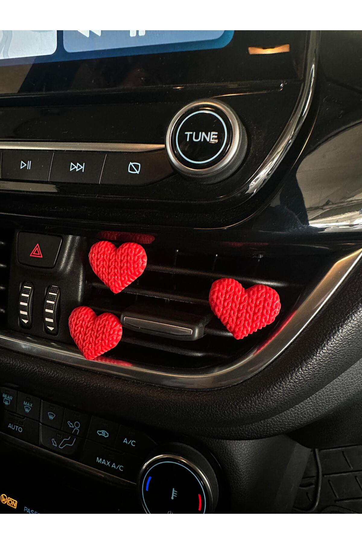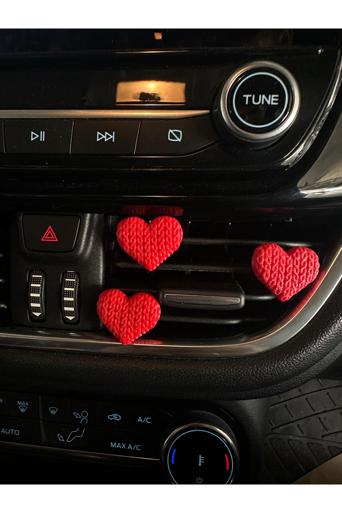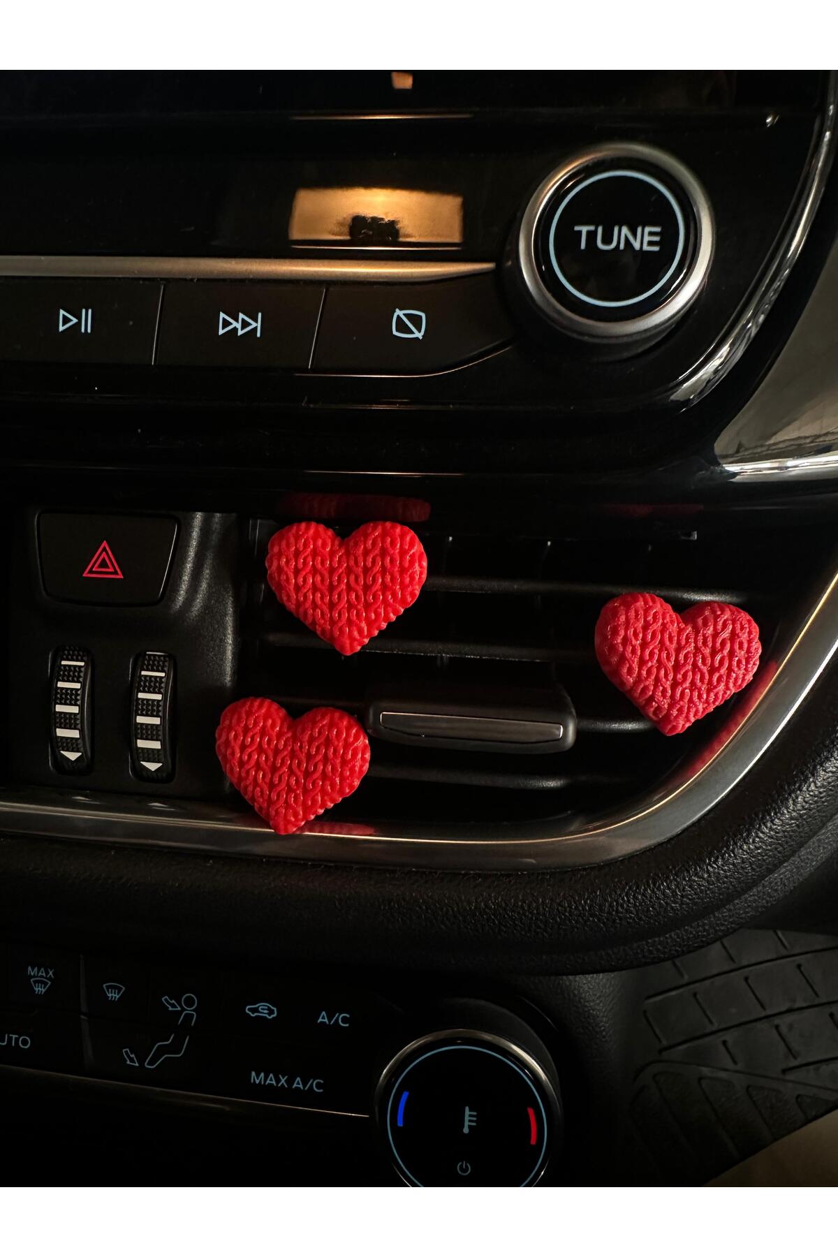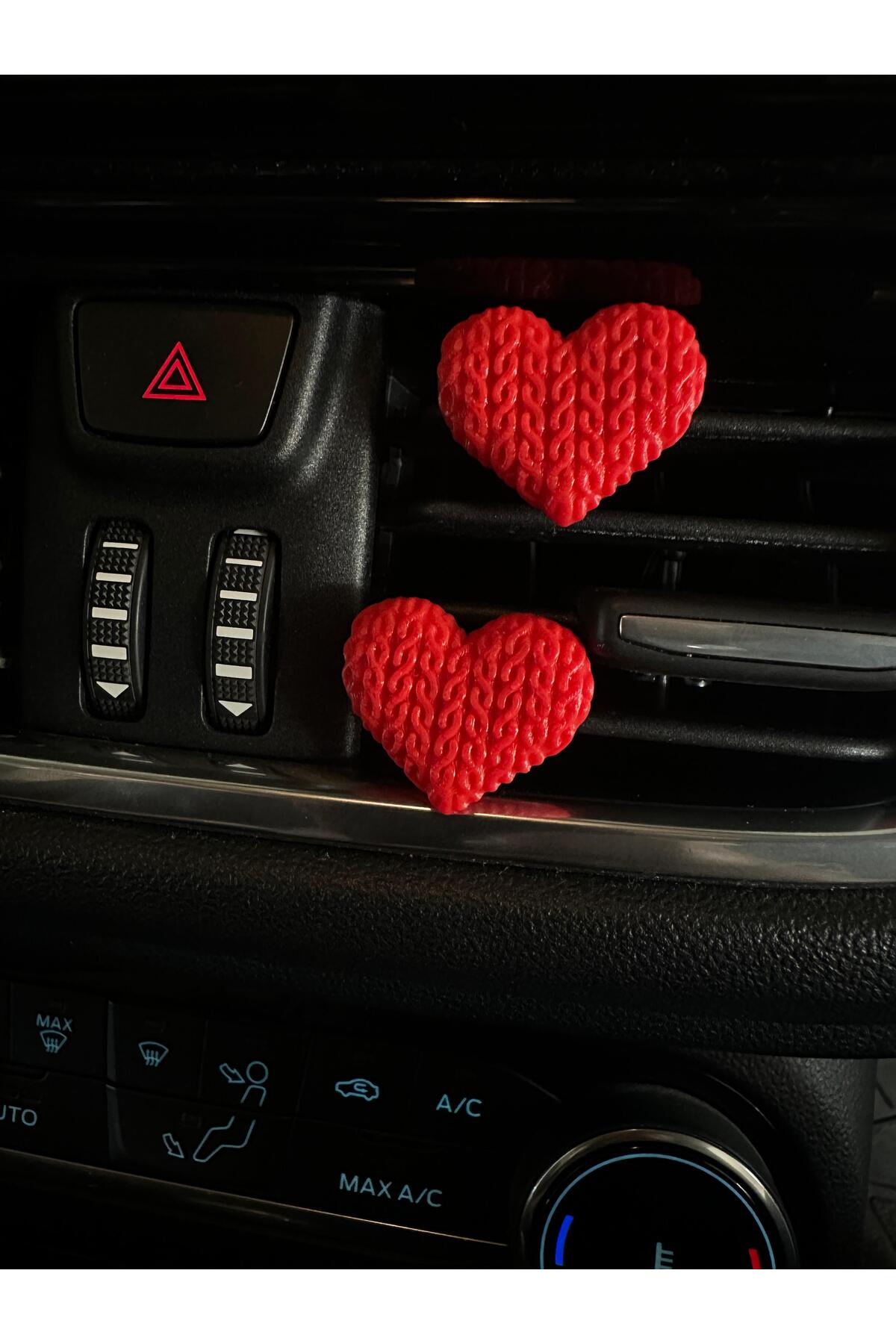 Aracınıza sıcak ve samimi bir dokunuş katın! El işi görünümündeki örgü desenli kırmızı kalp klipsler, hem şıklığı hem de sadeliği sevenler için tasarlandı. Kokusuz yapısıyla hassasiyeti olan kullanıcılar için ideal bir seçimdir. 3’lü set halinde sunulan bu dekoratif klipsler, klima ızgaralarına kolayca takılır ve aracınıza romantik bir hava katar.