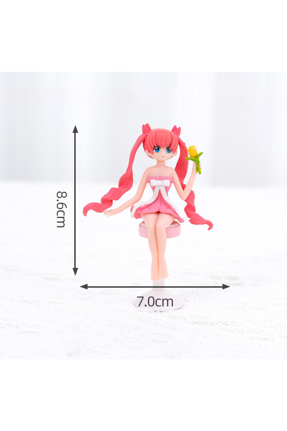 Uzun dalgalı pembe saçları ve mutlu sevecen bakışlarıyla bu anime figür, sade ama etkileyici bir duruş sergiliyor. Araba içi dekorasyonu, masa süslemeleri veya hediye olarak harika bir seçenek!