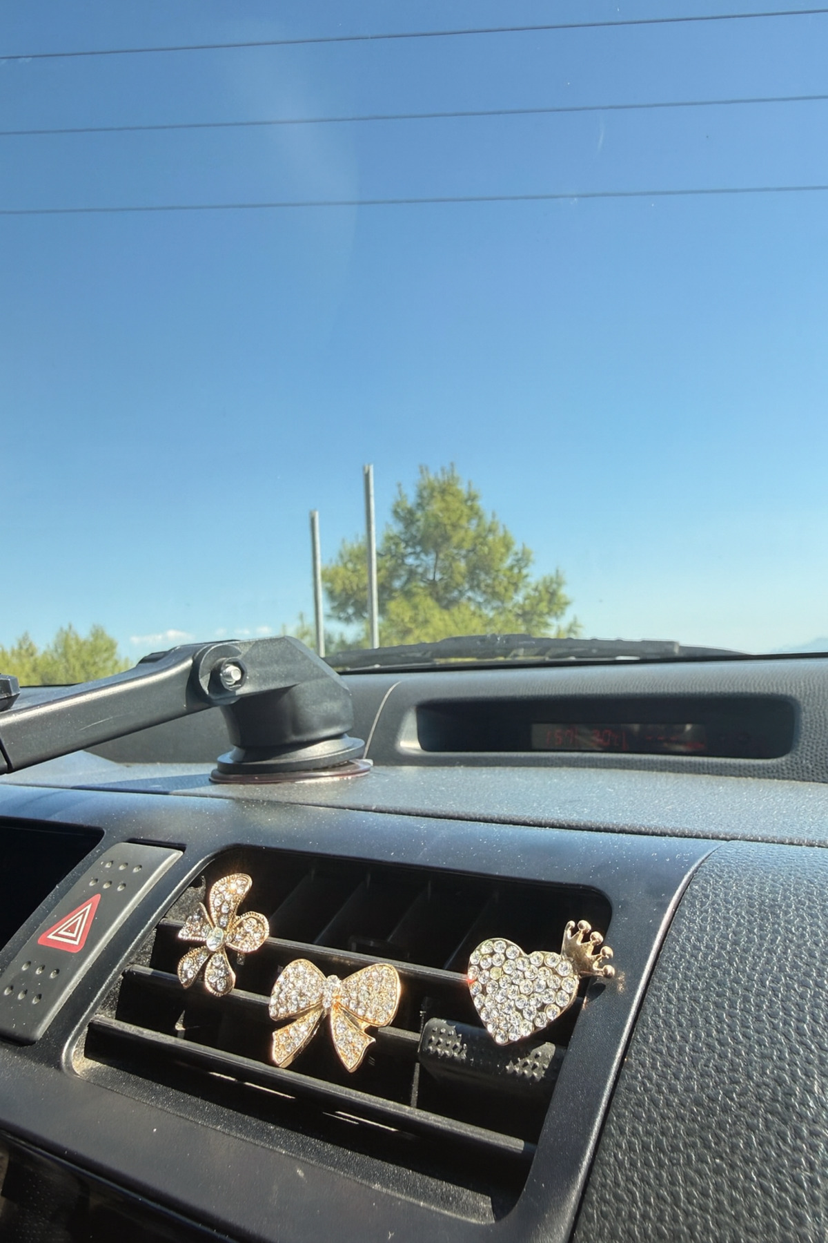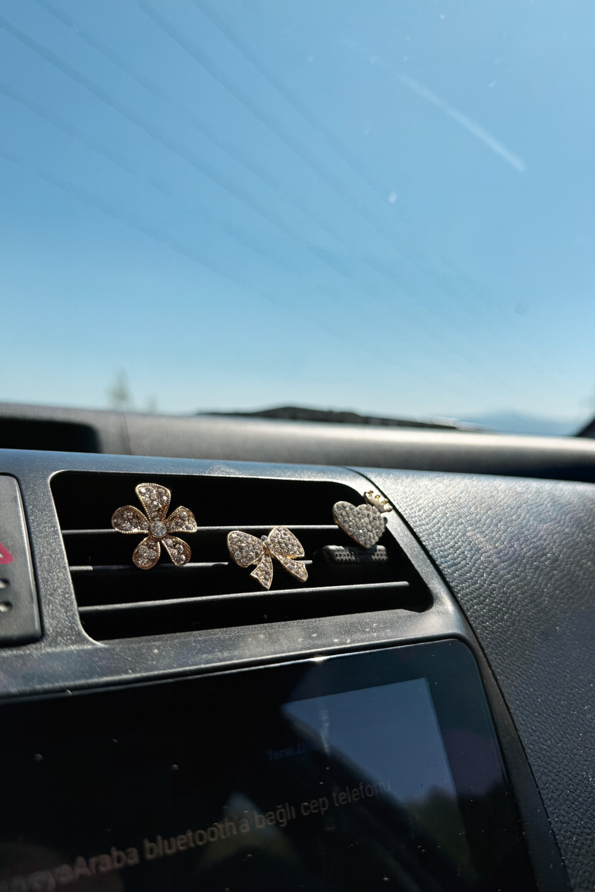 Aracınızın iç mekânına zarif ve ışıltılı bir dokunuş katın! Gold Çiçek, Fiyonk ve Kalp Taşlı Klima Izgara Süsü, şık tasarımıyla aracınızın havasını değiştirir.; Altın tonlu ve taş detaylı üçlü set, hem dekoratif hem de estetik bir görünüm sunar.; Şık ve Zarif Tasarım: Çiçek, fiyonk ve kalp figürlü altın renkli süsler, aracınızın iç mekânına şıklık katar.; Kolay Montaj: Klima ızgarasına pratik şekilde takılabilir, iz bırakmaz ve sökülmesi kolaydır.; Kaliteli Malzeme: Parlak taş detayları ve dayanıklı yapısıyla uzun ömürlü kullanım sağlar.; Evrensel Uyum: Çoğu araç klima ızgarası ve torpido için uygundur.; Bu set, aracınıza prenses gibi bir hava katmak ve kişisel tarzınızı yansıtmak için mükemmel bir seçimdir.