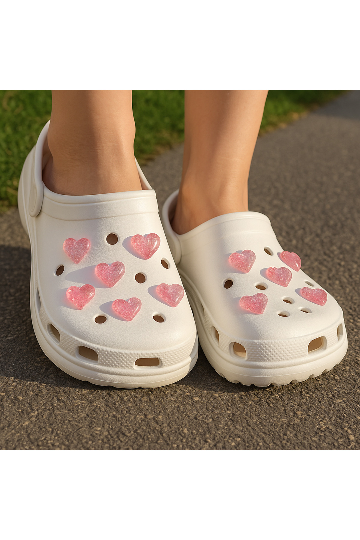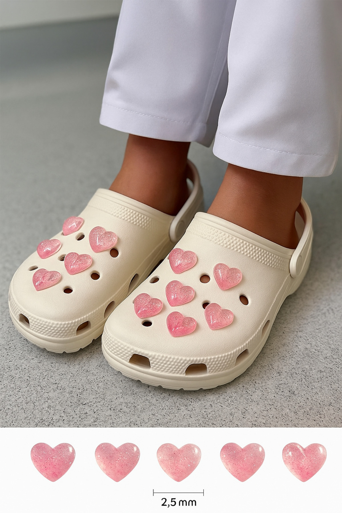 🐾 Jibbitz Terlik Süsü Terlik Charm Jel Kapler Simli 5’li | Kalp Figürlü Terlik Takıları